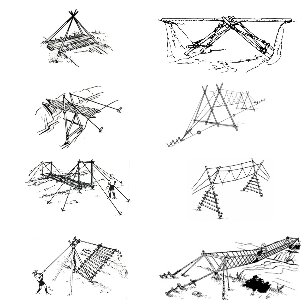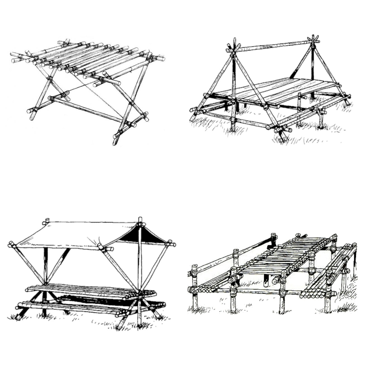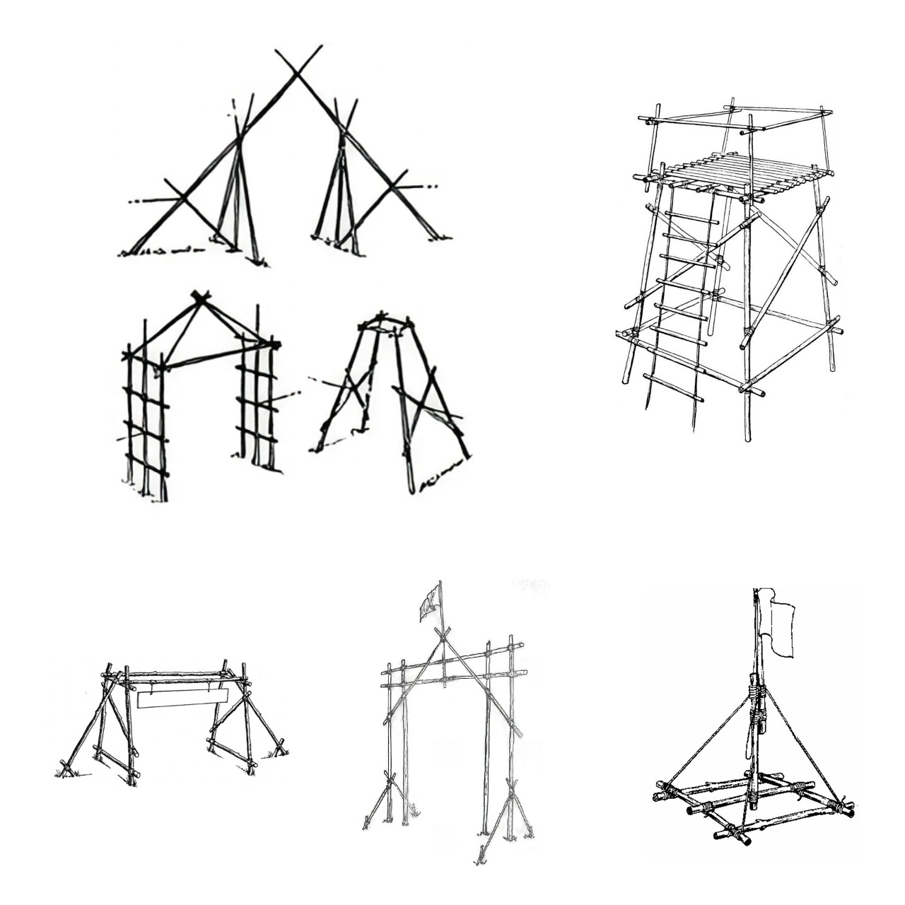 Имея в руках жерди и веревки, зная узлы и разбираясь в основах инженерного дела, можно построить самые разные конструкции от простых урн до дозорных вышек и мостов.